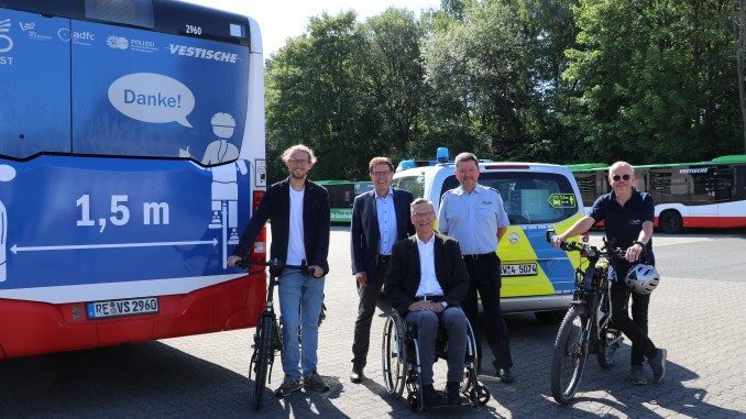 Um für mehr Sicherheit für Radfahrer zu sorgen, startet der Kreis Recklinghausen in Kooperation mit der Vestischen, der Polizei und dem Allgemeine Deutsche Fahrrad-Club (ADFC) eine Verkehrssicherheitskampagne, die genau dieses Problem thematisiert. „Halte 1,5 m Abstand zu Radfahrenden“ lautet der Slogan. Er ist ab sofort großflächig auf Werbeflächen in den Städten und auf Bussen der Vestischen zu sehen. Außerdem ist er durch Aufkleber auf den Fahrzeugen des Kreises und der Polizei aufgebracht.
