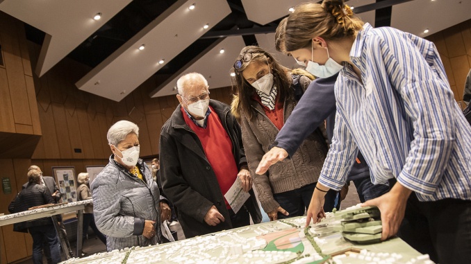 Der Dialog-Markt mit insgesamt neun Themeninseln bot den mehr als 150 Besucherinnen und Besuchern zahlreiche Informationen und bot die Möglichkeit, ins Gespräch mit den Expertinnen und Experten der Stadtverwaltung sowie den beteiligten Partnern zu kommen und ihre Ideen einzubringen.