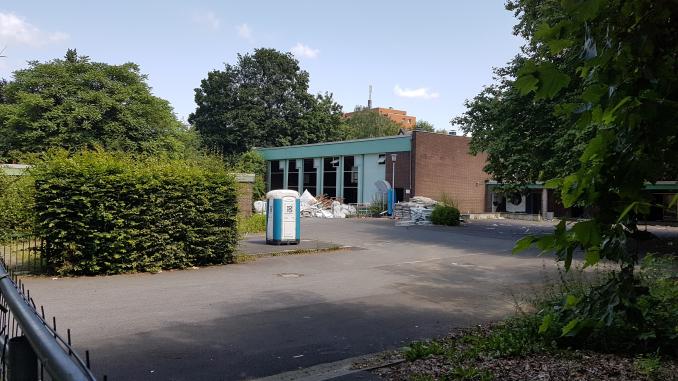 18.07.2021 – Hauptschule-Zweckel – Wer die Hauptschule-Zweckel, bzw. die Willy-Brandt-Hauptschule nebst Schwimmhalle noch einmal sehen will, muss sich beeilen. Ein Abrissunternehmen ist derzeit dabei die Hausmeisterwohnung, die Schwimmhalle und das Schulgebäude zu entkernen. Bevor die Bagger kommen, sind Kunststoffe, Türen, Fenster, Böden und Deckenverkleidungen zu entsorgen.