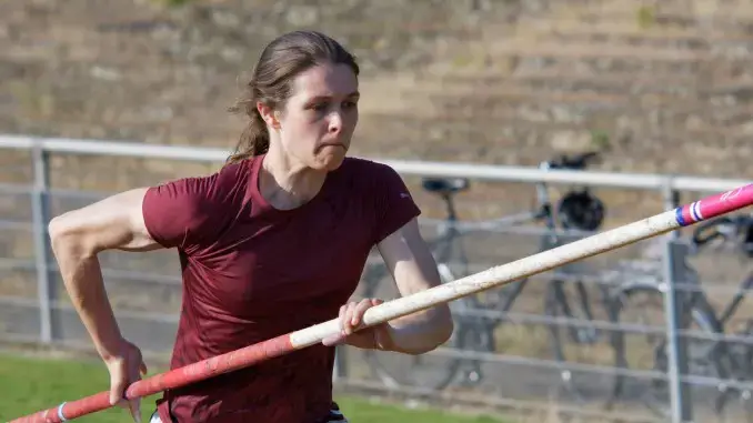 10.07.2023 – Anne Berger – Erfreuliche Nachrichten aus dem Lazarett: Anne Berger hat 6,5 Monate nach ihrer Operation nach einem Kreuzbandriss, den sie sich kurz vor Weihnachten zugezogen hatte, ihren ersten Wettkampf bestritten. Dazu fuhr sie mit ihrem Coach Christian Bludau nach Wipperfürth, bekannt für familiäre Atmosphäre und gute Bedingungen für Stabhochsprung.