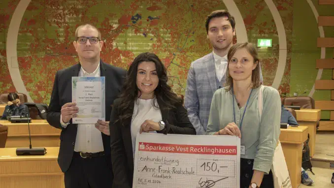Gladbeck – 10.01.2024 – Anne-Frank-Realschule – Das Kommunale Integrationszentrum des Kreises Recklinghausen (KI) hat im Großen Sitzungssaal des Kreishauses den Demokratiepreis für besonderes Engagement im Jahr 2024 verliehen.