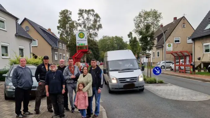 Während des Ortstermins tauchte plötzlich ein Kleinbus des KOD (Kommunaler Ordnungs-Dienst) mit zwei Mitarbeitern auf. Einer der anwesenden Nachbarn wusste schon, warum sie kamen und ging zum Wagen.