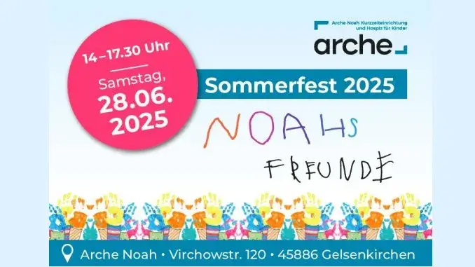 Gladbeck – 23.05.2025 – Arche Noah – Unter dem Motto „NOAHS FREUNDE“ lädt die Arche Noah, Kurzzeiteinrichtung und Hospiz für Kinder, zu ihrem diesjährigen Sommerfest ein.