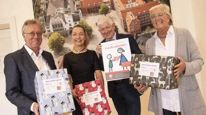 10.11.2022 – Arme Leute – Städtische MitarbeiterInnen beteiligen sich auch in diesem Jahr an der Aktion des Caritasverbandes „Freude schenken“. Den Startschuss gaben gestern Bürgermeisterin Bettina Weist, Bertram Polenz (Personalratsvorsitzender), Rainer Knubben (Vorstand Caritasverband Gladbeck) und Annegret Knubben (Caritas/Koordinatorin der Aktion).