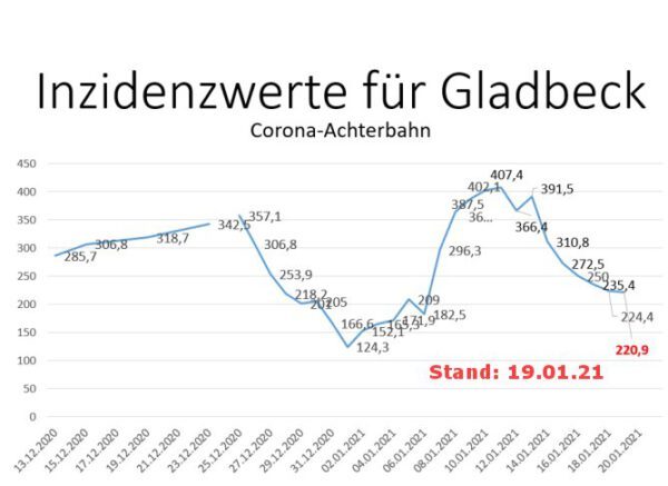 Inzidenzen im Kreis Recklinghausen: Haltern bei 26,4 – Gladbeck bei 220,9 – gesamter Kreis bei 143.