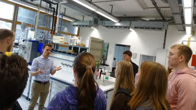 Gemeinsam mit ihrem Ausbildungsleiter Peter Brackmann sowie weiteren Ausbildern waren sie im Ruhrgebiet unterwegs, um Einblicke in die chemische Industrie der Ruhrmetropole zu erhalten. So machten sie unter anderem bei Evonik in Marl und BP in Gelsenkirchen Station. Ein Besuch am Recklinghäuser Campus bot nicht nur die Gelegenheit, sich über das dortige Studienangebot und die Forschung zu informieren, sondern auch ganz praktisch in die Analytik einzusteigen. Ermöglicht wurde der Besuch durch den guten Kontakt der Professoren zu dem Bremer Ausbildungsleiter. Prof. Steinmann begann seine berufliche Laufbahn mit einer Ausbildung zum Chemielaboranten an der Universität Bremen und bot den Auszubildenden damit ein anschauliches Beispiel für die beruflichen Entwicklungsmöglichkeiten.