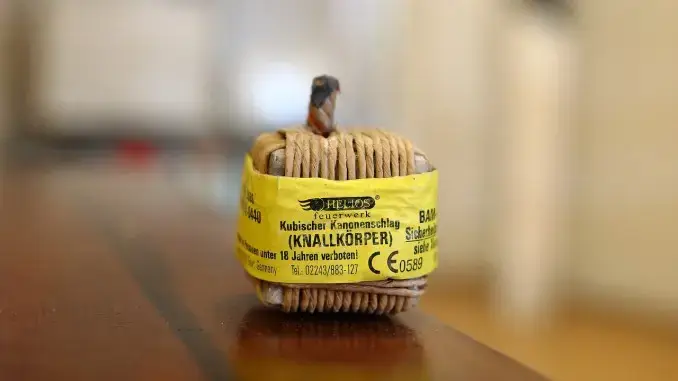wahrscheinlich Jugendliche und Kinder haben einen dicken Böller in eine Dose