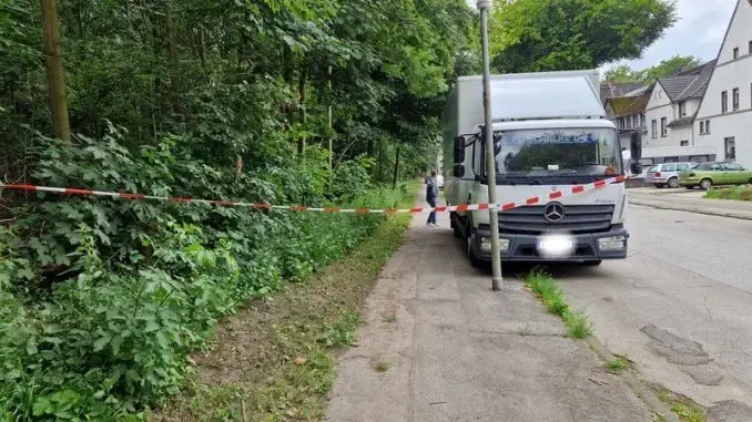 Sie sichteten den Fund, direkt neben dem Bürgersteig und sperrten den Bereich einige Meter weit mit Flatterband ab. Direkt an der Fundstelle steht ein LKW. Es handele sich um ein kleineres Objekt sagte schon, bei einer telefonischen Anfrage, die Pressestelle des Polizeipräsidiums Recklinghausen, was die Kräfte des Ordnungsamtes auch bestätigten. Es zu fotografieren wurde nicht gestattet.