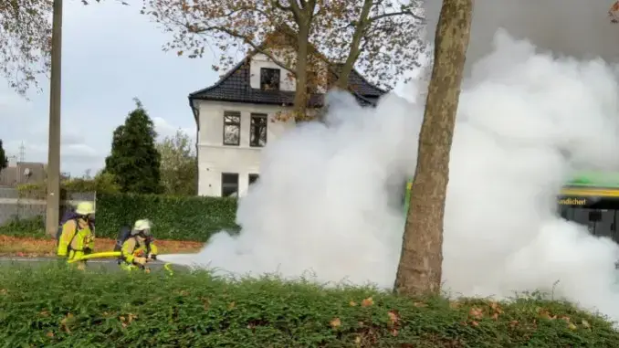 10.11.2023 – Brennender Linienbus – Heute Morgen wurde die Feuerwehr Gladbeck um 10:02 Uhr zu einem brennenden Linienbus auf die Bottroper Straße alarmiert. Der Busfahrer wurde durch andere Verkehrsteilnehmer auf die Rauchentwicklung aus dem Motorraum im Heck des Busses aufmerksam gemacht.