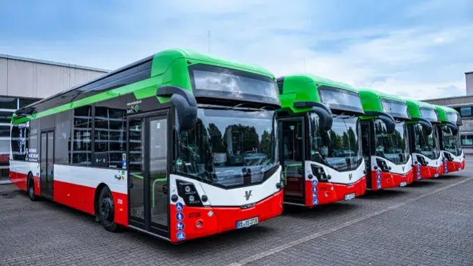 Gladbeck – 12.09.2025 – Brennstoffzellenbusse – Nachgelegt: Die Vestische nimmt fünf weitere Brennstoffzellenbusse in Betrieb. Mit den Fahrzeugen des nordirischen Herstellers Wrightbus setzt das Unternehmen die Modernisierung des Fuhrparks durch lokal emissionsfreie Busse fort.