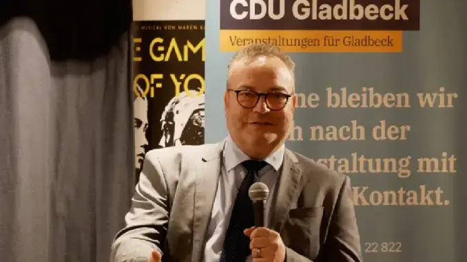 Gladbeck – 04.11.2024 – Keyword – Der amtierende Landrat Bodo Klimpel (CDU) stellte sich im Weinhandel Volmer den Gladbecker Christdemokraten vor. Begrüßt hat ihn der Stadtverbandsvorsitzenden Dietmar Drosdzol.