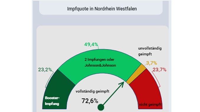 Der Kreis aktualisiert täglich auf seinem Corona-Dashboard die lokalen Zahlen. Bei den Angaben zur Impfquote werden allerdings die Zahlen des Landes NRW genannt. Die Quote der vollständig Geimpften wird mit 72,6 % angegeben. Dass man laut Auskunft der Kreisverwaltung nicht in der Lage ist, die Impfquoten der einzelnen Städte zu nennen, soll daran liegen, dass man sich inzwischen überall impfen lassen kann und das Zusammenführen der Daten nicht möglich sei.