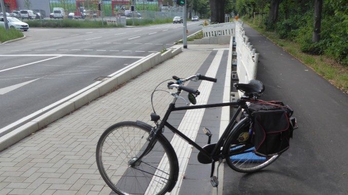 Eine Abbiegespur für Fahrräder direkt neben der Autospur und eine kurze Rampe vom Überweg in Richtung Gladbeck hätte sich angeboten – aber derart praktikable Dinge sind wohl nicht mit den Regeln der Straßenbauer vereinbar, für die Radfahrer immer noch eine lästige Randgruppe sind.
