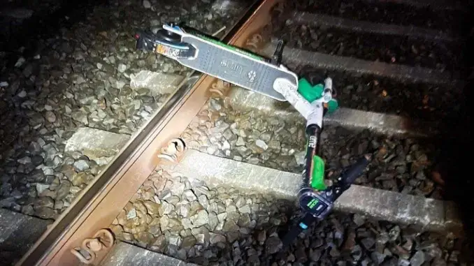E-Scooter beschädigte den Stromabnehmer und die Oberleitung