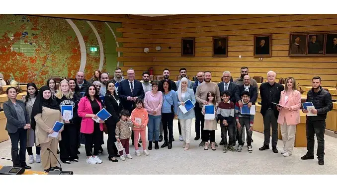 25.04.2024 – Einbürgerungsurkunden – 32 Frauen, Männer und Kinder haben von Landrat Bodo Klimpel im Großen Sitzungssaal des Kreishauses ihre Einbürgerungsurkunden bekommen. Damit sind sie nun offiziell deutsche Staatsbürgerinnen und Staatsbürger.