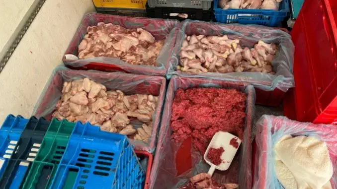 Ein besonders auffälliger Fall ereignete sich bei der Kontrolle eines Kastenwagens auf der B224/Braukstraße in Bottrop. Hier entdeckten die Kontrolleure falsch gelagertes Fleisch auf der Ladefläche (siehe Foto) – es fehlten Abdeckungen und das Fleisch hatte teilweise Kontakt mit der Innenwand des Fahrzeugs. Das Veterinäramt wurde hinzugezogen, die Ware musste letztendlich entsorgt werden. Außerdem wurde eine Ordnungswidrigkeitenanzeige (Owi) geschrieben.