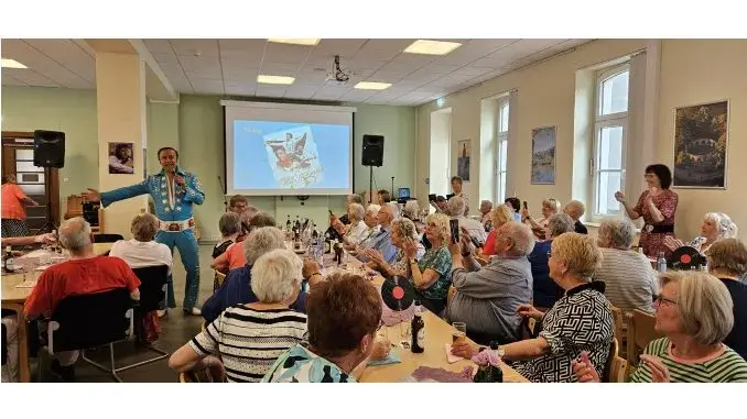 Gladbeck – 01.07.2025 – Elvis – Nach dem großen Erfolg im vergangenen Jahr kam Elvis am 24. Juni erneut ins Fritz-Lange-Haus nach Gladbeck und sorgte bei rund 100 Seniorinnen und Senioren für strahlende Gesichter und bewegte Herzen. Es war bereits die zweite Veranstaltung, bei der Elvis auf dem Tisch stand und gemeinsam geschunkelt, getanzt und gefeiert wurde.