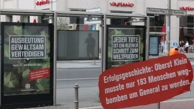 Die Bundeswehr macht sich hoffähig und drängt in die Schulen und Jobzentren um „Kanonenfutter“ anzuwerben. Die Sitten verrohen. Im Radio konnte man kürzlich hören, dass es schlecht um die Ukraine bestellt sei, weil sie nicht genügend „Menschenmaterial“ habe, um noch lange durchzuhalten.