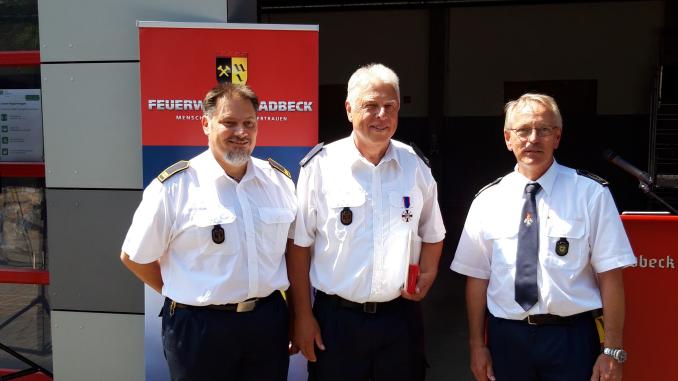 24.07.2021 – Feuerwehr-Ehrenkreuz – Kreisbrandmeister Robert Gurk hat am Freitag, 23. Juli, Peter Frank von der Feuerwehr Gladbeck aufgrund seiner Verdienste als Leiter des PSU-Teams des Kreises Recklinghausen das Feuerwehr-Ehrenkreuz verliehen. PSU steht für „Psychosoziale Unterstützung“. Frank und sein Team helfen den Einsatzkräften von Feuerwehren und Hilfsorganisationen in Katastrophensituationen.