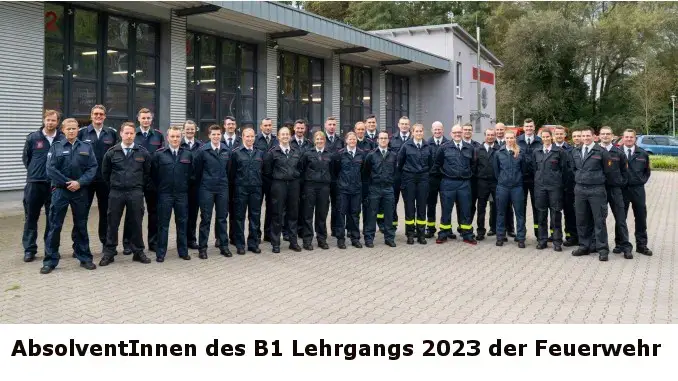 11.10.2023 – Feuerwehrleute – 33 Brandmeisteranwärterinnen und –anwärter haben erfolgreich den Feuerwehrlehrgang B1 abgeschlossen. Sie kommen aus Castrop-Rauxel, Datteln, Herten, Haltern am See, Recklinghausen, Rheine sowie von der Werkfeuerwehr VW Osnabrück. Den Lehrgang ausgerichtet haben die Feuerwehren in Marl und Dorsten.