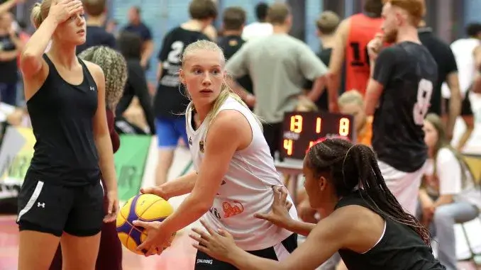 Gladbeck – 08.07.2025 – NRW3x3-Tour – Ein Event mit hohem Unterhaltungswert: Schnell, fair und dynamisch ging es zu am Sonntag auf dem Campus Blumenthal in Recklinghausen. Die junge olympische Basketballdisziplin „3×3“ begeisterte Aktive und Besucherinnen und Besucher in Recklinghausen beim Finale bei der 31. NRW3x3-Tour. Eine der größten BasketballBreitensport-Events Deutschlands tourte wieder durch das Land.