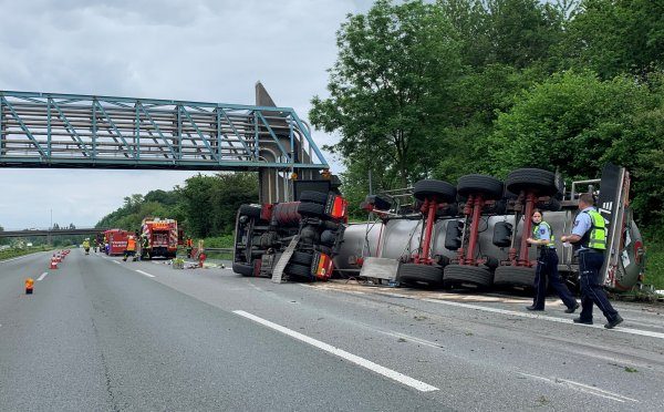Tankwagen kippte auf der Autobahn um (Update 1 + 2 + 3)