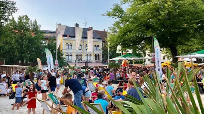 Das Gefühl vom Urlaub vor der Haustür vervollständigt der Urlaubsstrand mitten auf dem Rathausplatz. Bis zu 50 Tonnen Sand, Palmen, Liegestühle und das angenehme Sommerwetter versetzen jeden Besucher sofort mitten in die Karibik. Dazu gibt es jeden Tag Live-Musik direkt auf der Bühne am Sandstrand. Dabei ist selbstverständlich zum Tanzen, aber auch zum Entspannen eingeladen!