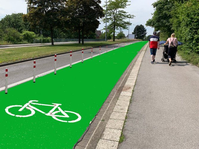 „In der Haushaltsberatung gab es von allen Fraktionen den Wunsch, das Radfahren in Gladbeck weiter zu fördern“, freut sich Bernd Lehmann, stellvertretender Fraktionsvorsitzender der GRÜNEN. Wir GRÜNE wünschen uns hier eine mutige Lösung, indem die heutige Parkspur für einen breiten, sicheren Radweg genutzt wird. Gemeint ist eine protected bike lane, also eine geschützte Fahrradspur, die sich schnell umsetzen lassen kann.