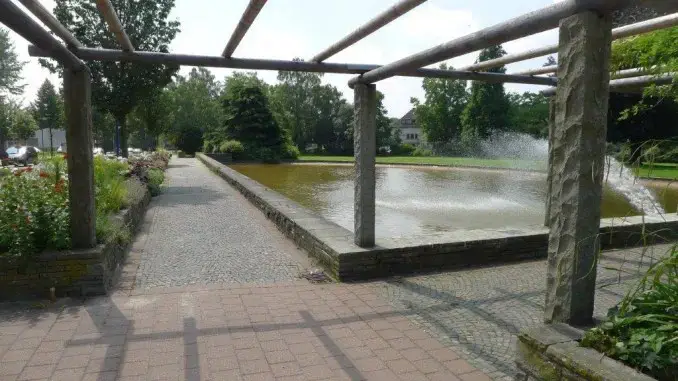 Zurück zum „Ensemble“ dessen schönstes Stück, das alte Hallenbad, schon längst abgebrochen ist. Leider hat man den Park in den Folgejahren genauso schlecht behandelt und vergammeln lassen. 1,1 Millonen Euro für eine „Grüne Achse“ sind im Beton versenkt. Oder war das schon ein Vorgriff auf eine „weitsichtige Planung“ ?