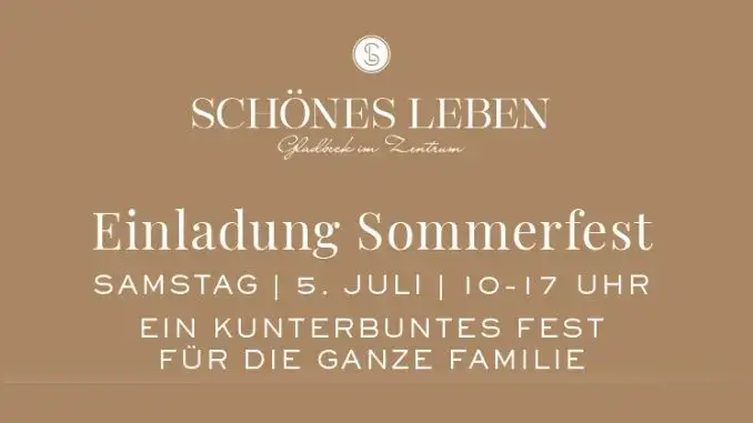 Gladbeck – 26.06.2025 – Haute Volée – Wie schon im vergangenen Jahr lädt das Haus SCHÖNES LEBEN Gladbeck im Zentrum am 5. Juli von 10 bis 17 Uhr in die Wilhelmstraße 12 zum kunterbunten Sommerfest für die ganze Familie ein. Die Besucher jeden Alters erwartet ein Tag voller guter Unterhaltung und Aktion, kulinarischer Genüsse und spannender Einblicke. Die Teilnahme ist kostenfrei und ohne Anmeldung – einfach vorbeischauen.