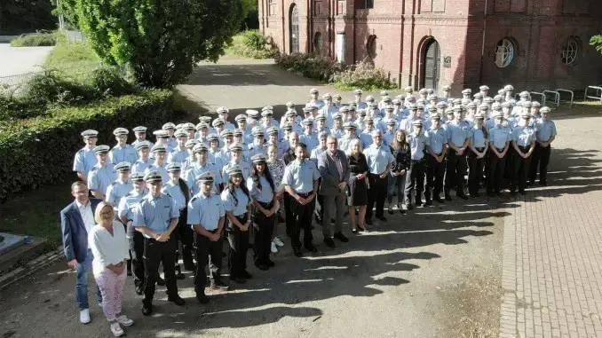 08.07.2024 – Neue Polizisten – Polizeipräsidentin Friederike Zurhausen hat heute, am 8. Juli, 114 Studierende der Polizei begrüßt. In den kommenden acht Wochen werden die Auszubildenden gemeinsam mit erfahrenen Polizeibeamtinnen und Polizeibeamten auf den Straßen im Kreis Recklinghausen und der Stadt Bottrop unterwegs sein und auf verschiedenen Dienststellen Praxiserfahrungen sammeln.