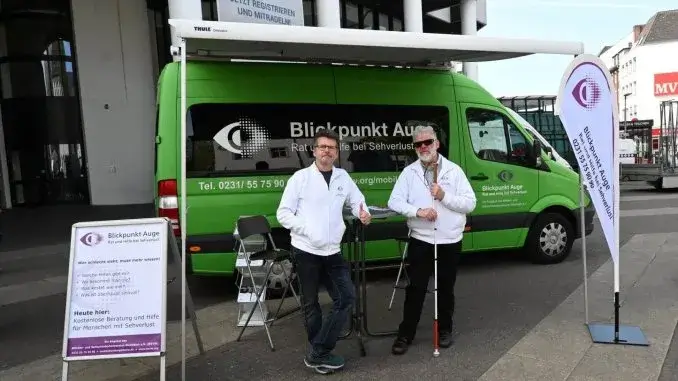 Gladbeck – 09.10.2025 – Sehverlust – Wenn die Augen schlechter werden, wird das Leben schwieriger. Da es gerade für ältere Menschen in dieser Situation schwierig ist, weiter entfernte Beratungsstellen zu erreichen, hat der Blinden- und Sehbehindertenverein Westfalen e.V. mit Unterstützung der Aktion Mensch und des Verbandes der gesetzlichen Krankenkassen ein mobiles Beratungsangebot für Menschen geschaffen, für die Sehen zum Problem wird.
