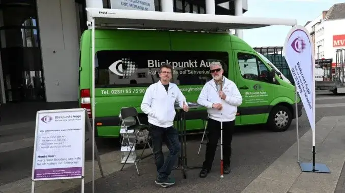 Gladbeck – 22.07.2025 – Sehverlust – Wenn die Augen schlechter werden, wird das Leben schwieriger. Da es gerade für ältere Menschen in dieser Situation schwierig ist, weiter entfernte Beratungsstellen zu erreichen, hat der Blinden- und Sehbehindertenverein Westfalen e.V. mit Unterstützung der Aktion Mensch und des Verbandes der gesetzlichen Krankenkassen ein mobiles Beratungsangebot für Menschen geschaffen, für die Sehen zum Problem wird.