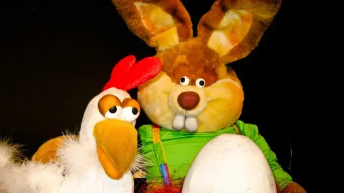 dürfen sich alle ab drei Jahren auf das Figurentheater „Hoppelpoppels Hasenfrühstück“ freuen. Hoppelpoppel fiebert seinem Picknick mit Knabberkarotte und Löwenzahnmüsli entgegen, doch daraus wird nichts. Dauernd klingelt das Telefon. Hinz, Kunz, Schulze, Meier – alle wollen frische Eier. „Falsch verbunden!”, mault der Hase, „das ist Hühnersache. Was hab ich damit zu tun?“