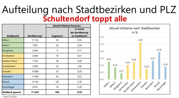 Doch nun, knapp drei Monate später stellt sich die Situation völlig anders dar. noch am 13. Januar schrieb die Bürgermeisterin in einem offenen Brief an Hübner: „Die aktuellen Zahlen belegen, dass sich in der jüngsten Vergangenheit überwiegend Menschen nicht-migrantischer Herkunft mit dem Coronavirus angesteckt haben.“ Na klar, denn der überwiegende Teil der Menschen in Gladbeck ist auch nicht-migrantischer Herkunft. Von einem Bezug zur Relation war in dem Schreiben auch keine Rede. Woher die Bürgermeisterin das am 13. Januar schon wusste, bleibt wohl ihr Geheimnis, denn erst vor wenigen Tagen hat die Stadtverwaltung anhand einer Nachnamenauswertung festgestellt, wie hoch der Migrantenanteil unter den Corona-Kranken ist.