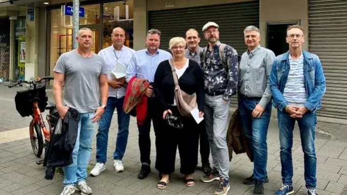 Gladbeck – 18.07.2025 – Innenstadt – VertreterInnen der Stadtverwaltung Gladbeck und einige HändlerInnen der Innenstadt trafen sich zu einem gemeinsamen Rundgang, um aktuelle Themen wie Sauberkeit, Gestaltung und Sicherheit in der City zu besprechen.