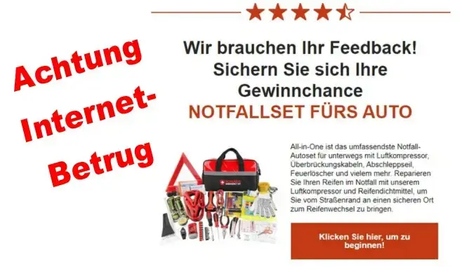 wir möchten Ihnen die einmalige Gelegenheit bieten, eine brandneue Notfallset fürs Auto! zu erhalten Um Anspruch zu erheben, nehmen Sie einfach an dieser kurzen Umfrage zu Ihren Erfahrungen mit ADAC teil.