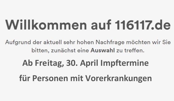 Jetzt Impftermine bei bestimmten Vorerkrankungen