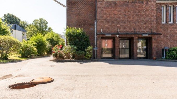 Im Zuge von Sanierungsarbeiten sind hier Dach-, Wege- und Parkplatzflächen von der Mischwasserkanalisation abgekoppelt worden. Das bedeutet: Niederschlagswasser wird nicht mehr in die Kanalisation geleitet und von dort zusammen mit Schmutzwasser in die Kläranlage, wo es aufwendig gereinigt werden muss. Sondern es gelangt von den Flächen in ein unterirdisches Speicherbecken (Rigole), von wo aus es nach und nach ins Grundwasser versickern kann. Rund 1200 Quadratmeter Flächen sind abgekoppelt worden, die Emschergenossenschaft hat dies mit rund 21.400 Euro gefördert.