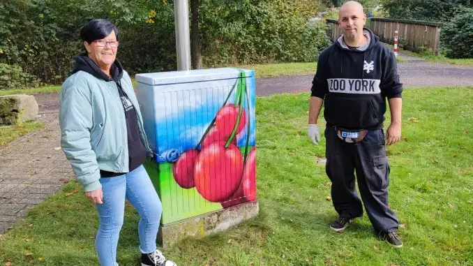 Werner Hülsermann von der Siedlergemeinschaft Rentfort und Müzeyyen Dreessen vom Freundeskreis Gladbeck-Alanya konnten dafür wieder den Graffiti-Künstler Maurizio Bet mit der Gestaltung beauftragen.