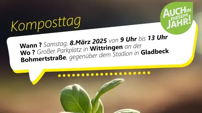 Gladbeck – 04.03.2025 – Komposttag 2025 – Nach dem erfolgreichen Start des ersten Komposttags im Frühjahr 2024 bietet der ZBG auch in diesem Jahr wieder hochwertigen Kompost kostenfrei für alle interessierten Gladbeckerinnen und Gladbecker an.