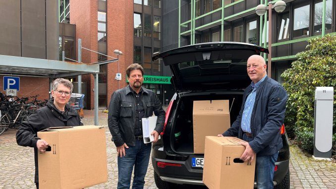 29.03.2022 – Fünf große Umzugskartons hat das „Projektteam Kreishaussanierung“ am Dienstag im Technischen Rathaus der Stadt Recklinghausen abgegeben. Darin enthalten: die Unterlagen für den Bauantrag für die Kreishaussanierung. „Wir liegen damit voll im Zeitplan. So ist das auch mit der Politik abgestimmt“, sagt Kreisdirektor Roland Butz.