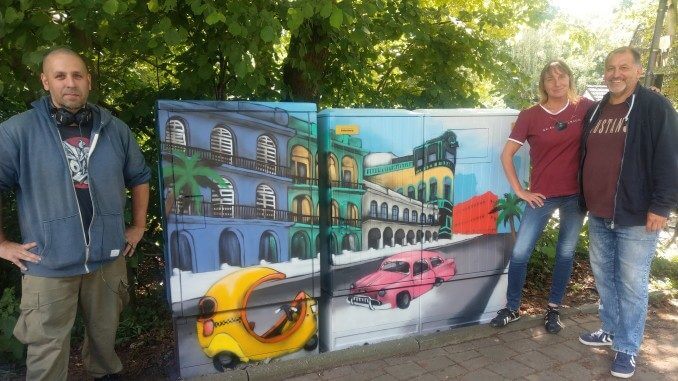 12.06.2022 – Kubanisches Flair – Gladbeck ist inzwischen in der Bevölkerungsstruktur bunt geworden. Das zeigt sich auch bei den Motiven der zahlreich gestalteten Stromkästen im Stadtgebiet. Werner Hülsermann von der Siedlergemeinschaft Rentfort und Müzeyyen Dreessen vom Freundeskreis Gladbeck-Alanya ließen sie über Sponsoren künstlerisch gestalten.