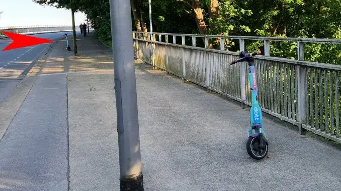 Auf der Brücke der Zweckeler Straße stehen gleich drei E-Scooter