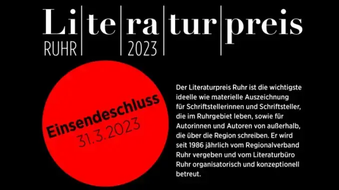 Bewerbungen für den Förderpreis nimmt das Literaturbüro Ruhr ebenfalls bis zum 31. März 2023 entgegen. Der Förderpreis ist mit 5.000 Euro dotiert.