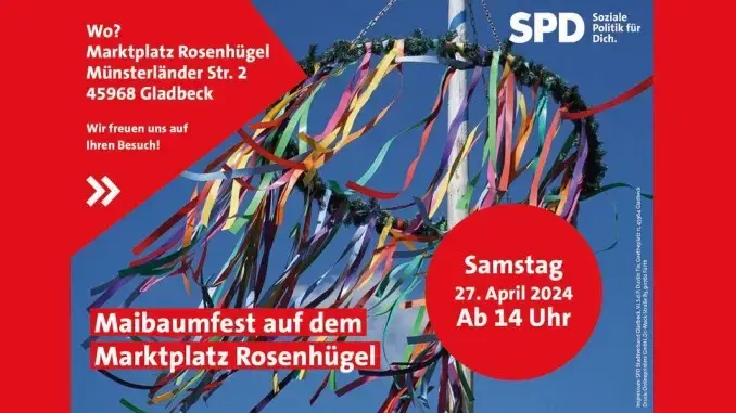 24.04.2024 – Maibaumfest – Die SPD-Ortsverein Süd lädt alle Interessierten zur alljährlichen Aufstellung des Maibaums mit Familien- und Nachbarschaftsfest ein.