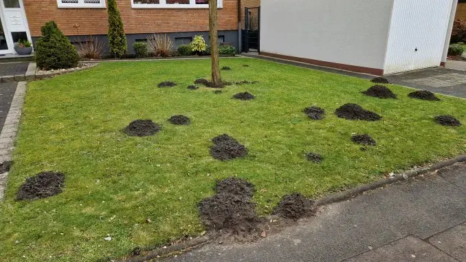 Die bei seiner Bautätigkeit anfallende Erde wird mit Hilfe der Schnauze und der Grabschaufeln an die Erdoberfläche befördert, wodurch die ungeliebten Maulwurfshügel entstehen. Ein erwachsener Maulwurf kann pro Tag bis zu 20 Hügel produzieren. Rasenflächen werden dadurch unansehnlich.