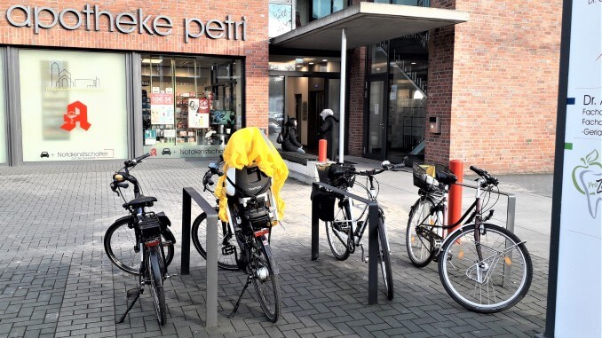 Die ärztlichen Betreiber des Campus müssen sich fragen lassen, warum sie nicht an das gesunde Fortbewegen ihrer Kundschaft mit dem Rad denken. Dass die drei Fahrradbügel am Haupteingang meistens voll belegt sind und viele Räder deshalb frei abgestellt sind, sollte allen dort arbeitenden Ärzten/innen aufgefallen sein. Schon aus ihrer ärztlichen Profession heraus sollten sie den Kunden/innen einen großen Anreiz bieten, statt des Autos ihr Fahrrad zu benutzen, denn viele wären körperlich dazu in der Lage. Als Arzt/Ärztin selbst Vorbild zu sein und das Rad zu benutzen, wäre zudem nicht schlecht.
