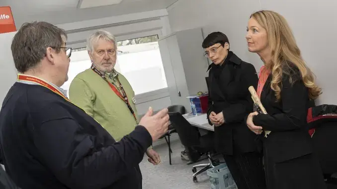 Auch Ministerin Josefine Paul lobte die gute und enge Kooperation im Rahmen des Einrichtungsbesuchs. Man habe „im partnerschaftlichen Zusammenspiel“ in Gladbeck eine gute gemeinsame Lösung gefunden. Das Land arbeite intensiv daran, in Kooperation mit den Kommunen das Landessystem weiter auszubauen. Dieser Verantwortung können Land und Städte nur im engen Miteinander gerecht werden, schließlich sind Landeseinrichtungen immer in den Städten angesiedelt. Einig waren sich Ministerin und Bürgermeisterin auch, dass Bürgerinnen und Bürger vor Ort auf diesem Weg mitgenommen werden.