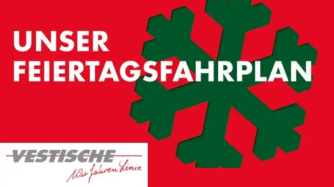 Am 25. Dezember verkehren alle Busse des ab ca. 10 Uhr nach dem Sonn- und Feiertagsfahrplan. Die Linie SB91, die die Vestische in Kooperation mit der STOAG betreibt, ist bereits ab 7.45 Uhr zwischen Bottrop (ZOB Berliner Platz) und der Haltestelle „Bero Zentrum“ unterwegs. In den späten Abendstunden setzen zudem die Nacht-Expresse regulär ein.